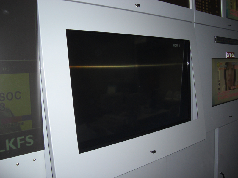 - 既存のモニター棚を使用し、モニターの仕様変更(ブラウン管型→液晶型)を受けモニターのブラケット、化粧パネルを新規設計製作するのにかなり時間をかけた現地調査を行い調整設置をしました。